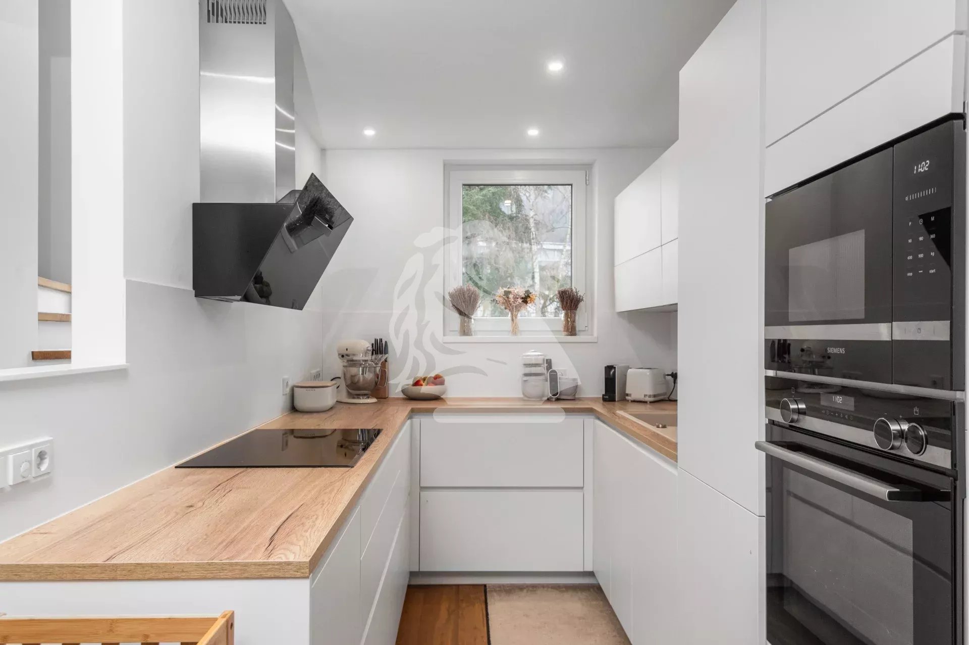 Built on a plot of 1a72ca, the house offers approximately 160 sqm of living space distributed over four levels, providing a bright, functional and comfortable living environment, ideal for a family.