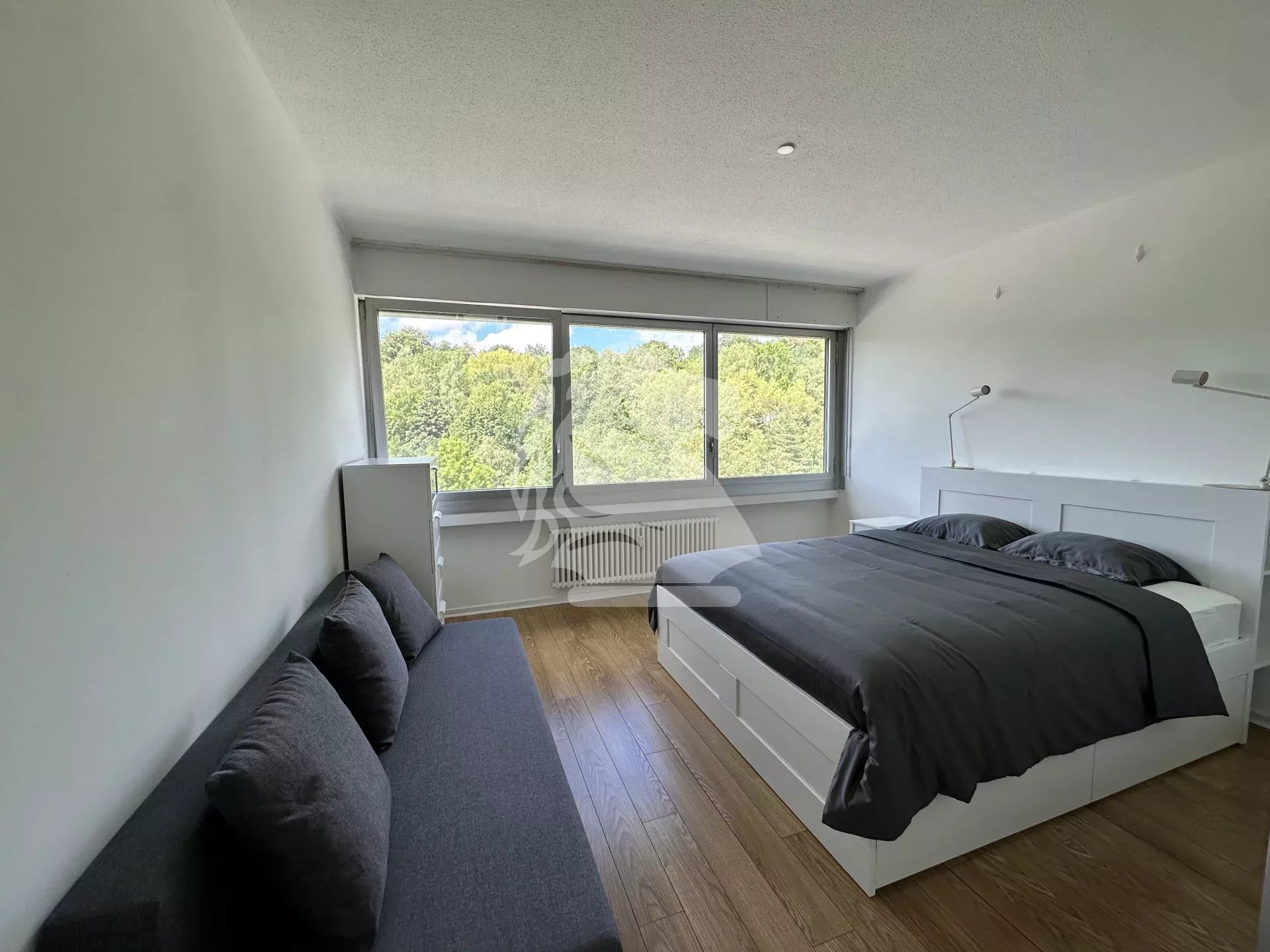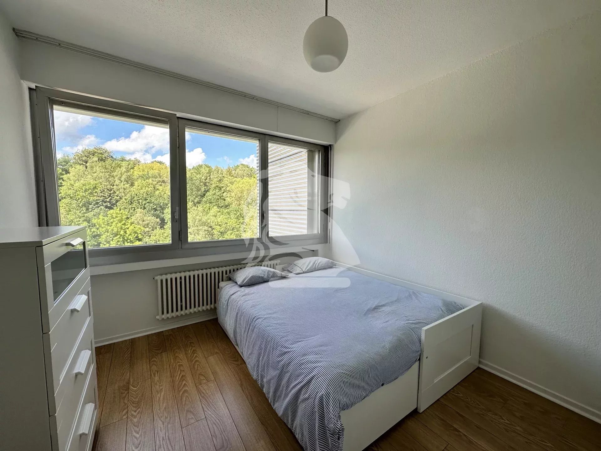 Atouts : vue imprenable de chaque côté de l’appartement, ascenseurs, commerces immédiatement au pied de l’immeuble, volets roulants, double vitrage