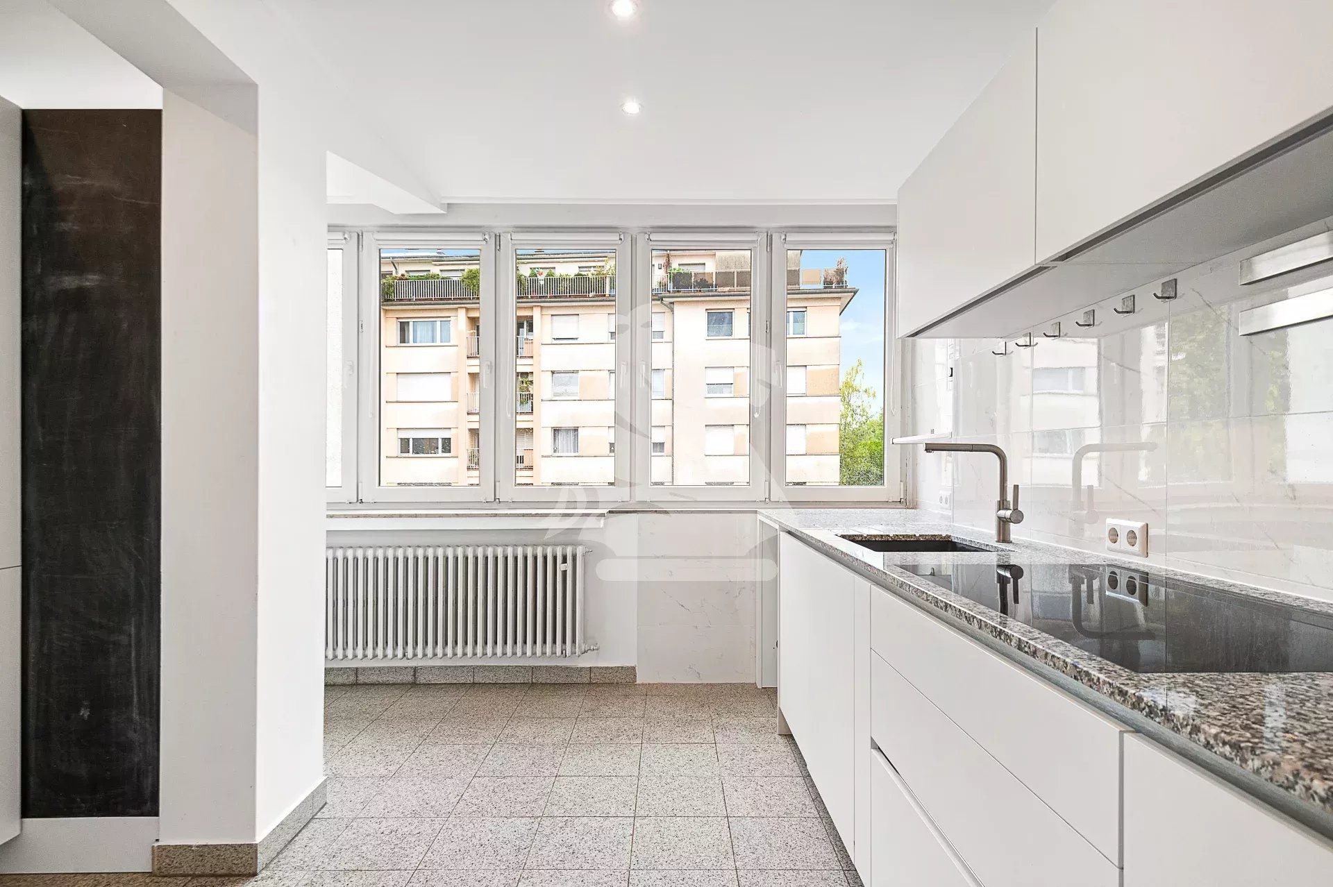The property comprises two generous main rooms, wooden parquet flooring, an elevator with only one apartment per floor over four levels, as well as a spacious, private and enclosed cellar.