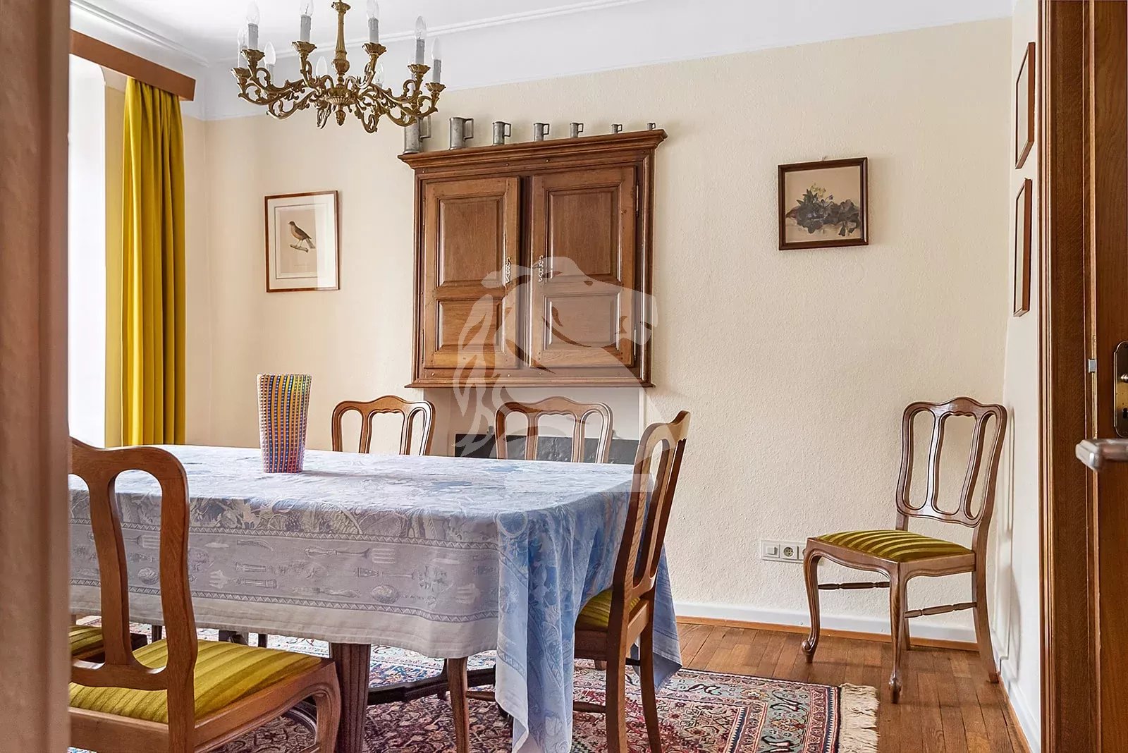 To the left of the hall, a living room and dining room welcome your moments of relaxation or conviviality, offering warm rooms with historic charm.