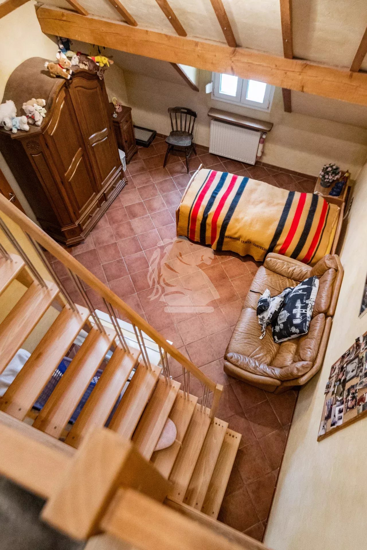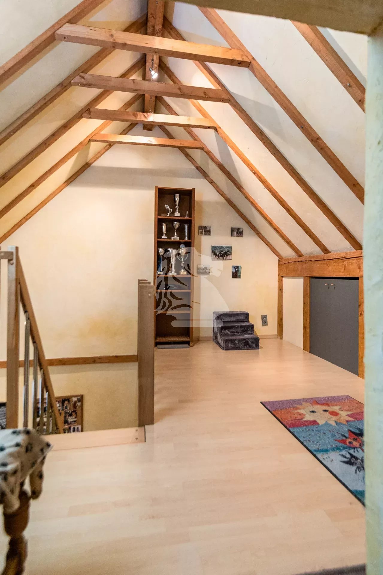 The second floor offers three bedrooms, including one with a mezzanine leading to an extra room that can be used as a playroom or for other purposes. A bathroom with WC completes this floor.